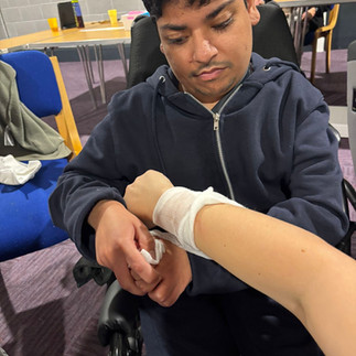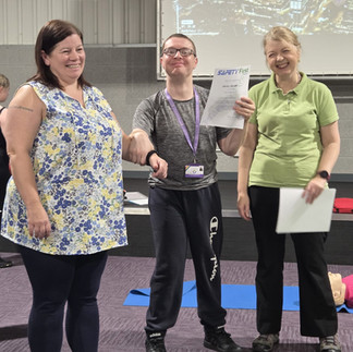 The bespoke First Aid Training on Tuesday (Lottery funded) was a huge success. The trainers Sarah and Tim ensured that everyone could learn at their own pace, learning C.P.R, recovery position, choking and how to apply bandages. Please take a look at the fabulous pics.